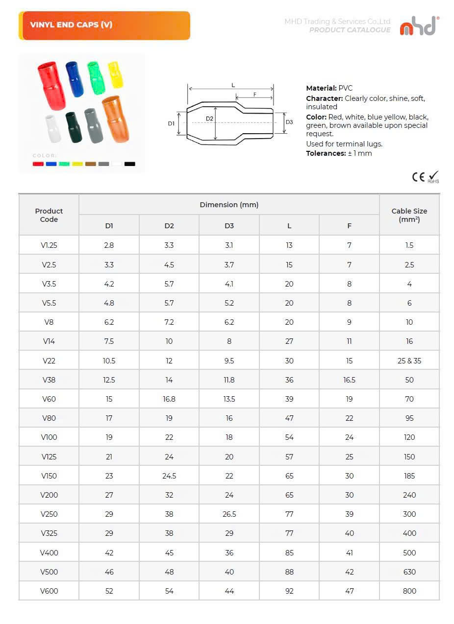 Applicable terminal nominal size: 22mm²; Brown; PVC